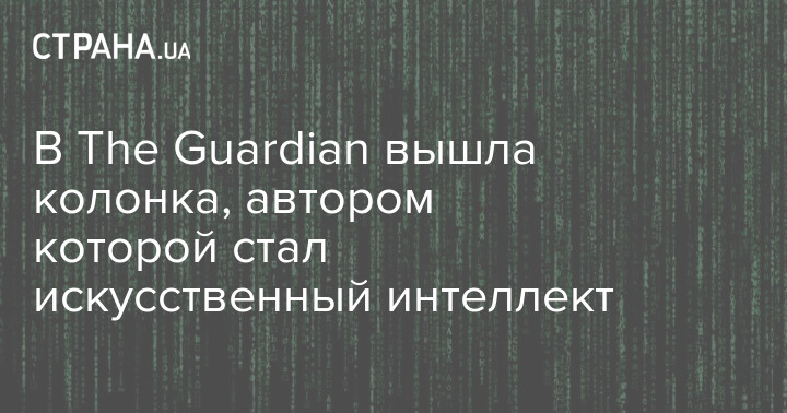 Авторитетное британское издание The Guardian опубликовало колонку, сочиненную искусственным интеллектом. Материал несколько зловеще озаглавлен: "Эту статью целиком написал робот. Тебе уже страшно, человек?"