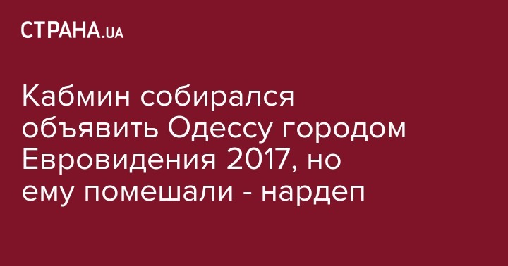 Кабмин собирался объявить Одессу городом Евровидения 2017, но ему помешали - нардеп
