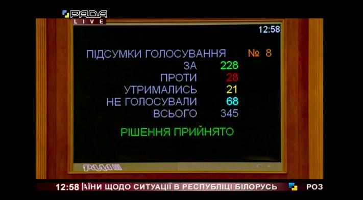 За проголосовали 228 нардепов - на два больше необходимого минимума.
