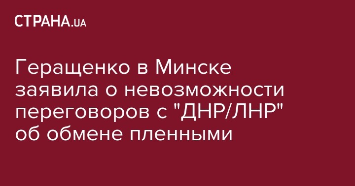 Первый вице-спикер Верховной Рады, представитель Украины в подгруппе по гуманитарным вопросам Трехсторонней контактной группы в Минске Ирина Геращенко опровергла возможность ведения переговоров непосредственно с сепаратистами по освобождению украинских пленных, как это предлагала Надежда Савченко. Как сообщил на своей странице в Facebook журналист Тарас Корниюк, об этом Геращенко заявила в Минске на коротком брифинге.