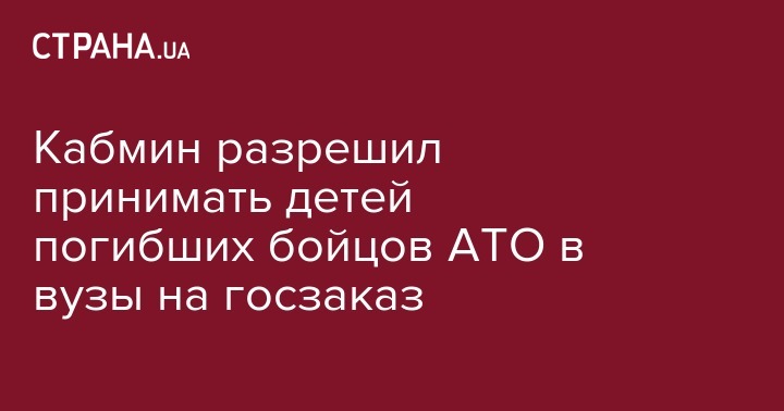 Кабинет Министров своим постановлением разрешил прием в вузы детей, родители (один из родителей) которых погибли в зоне АТО на места государственного заказа (бесплатное обучение).