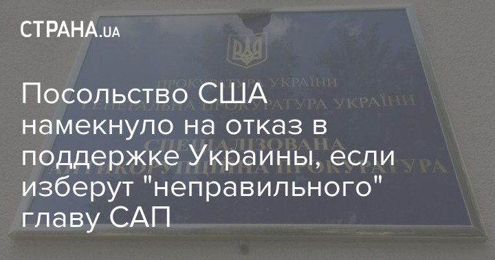 Посольство США намекнуло на отказ в поддержке Украины, если изберут "неправильного" главу САП