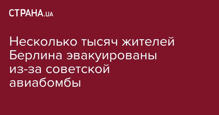 Полиция ФРГ эвакуируют в Берлине несколько тысяч человек в связи с выявлением авиабомбы времен Второй мировой войны. Об этом сообщили в правоохранительных органах города, передает ТАСС.