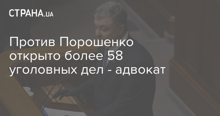 Против пятого президента Украины Петра Порошенко открыто 58 уголовных дел. Такую цифру назвал адвокат бывшего главы государства Илья Новиков, сообщает РИА Новости.