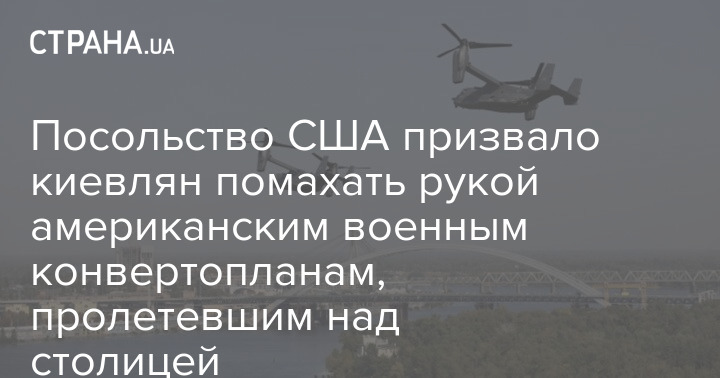 Посольство США призвало киевлян помахать рукой американским военным конвертопланам, пролетевшим над столицей
