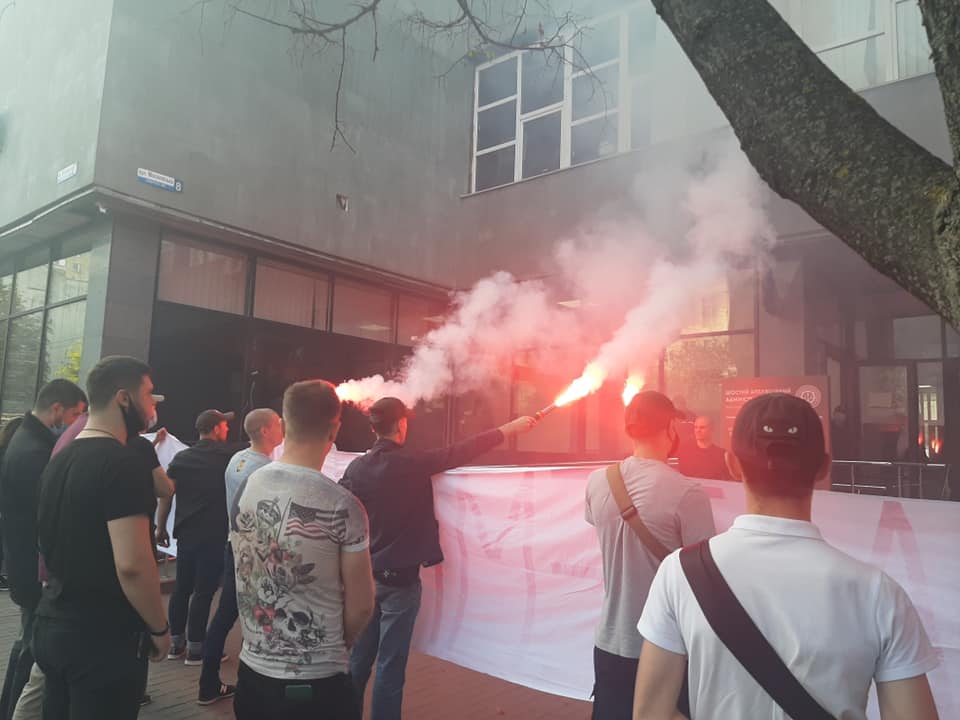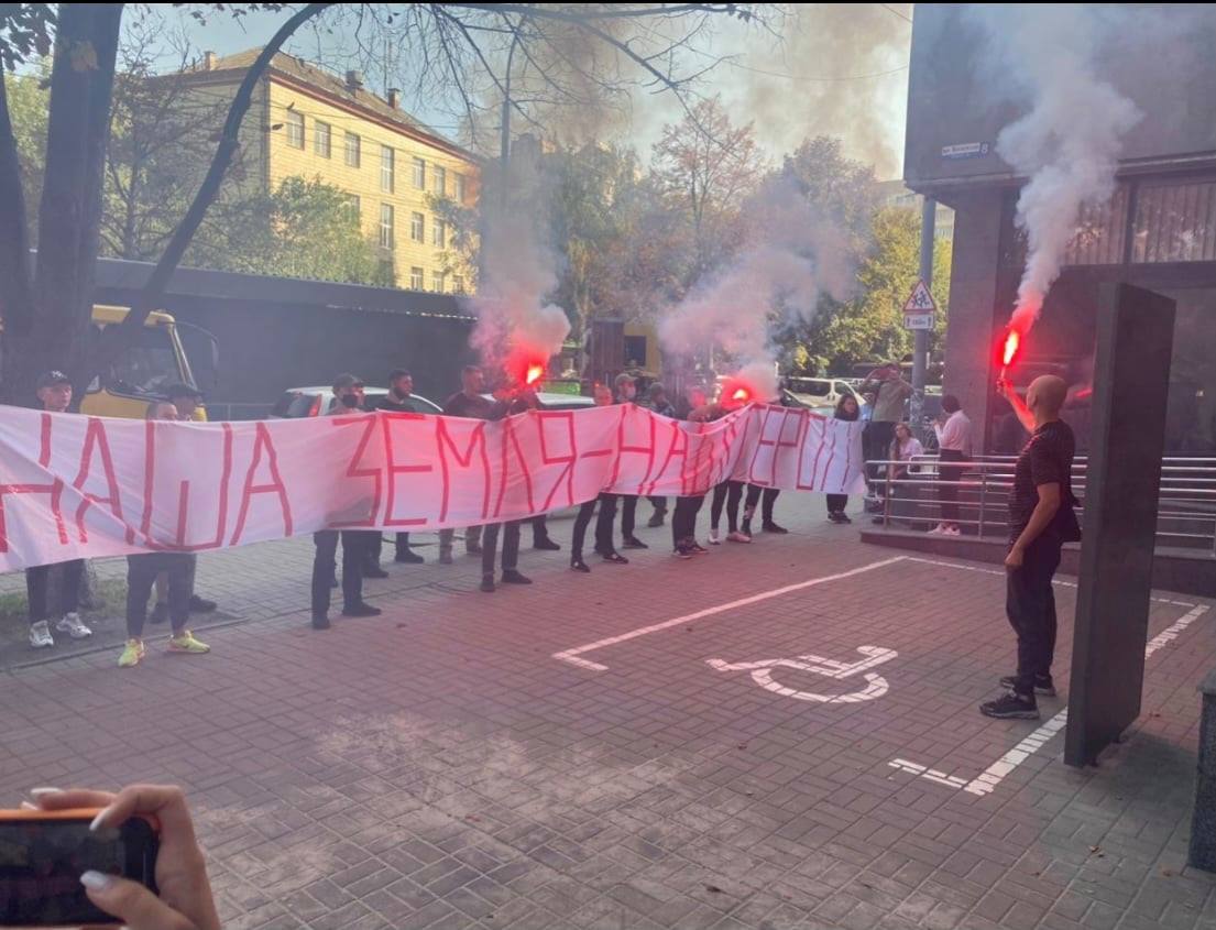 На своих страницах в соцсетях участие в акции подтвердили "Сокол" (молодежное крыло "Свободы") и "Правый сектор". Они также опубликовали фото из-под здания суда.