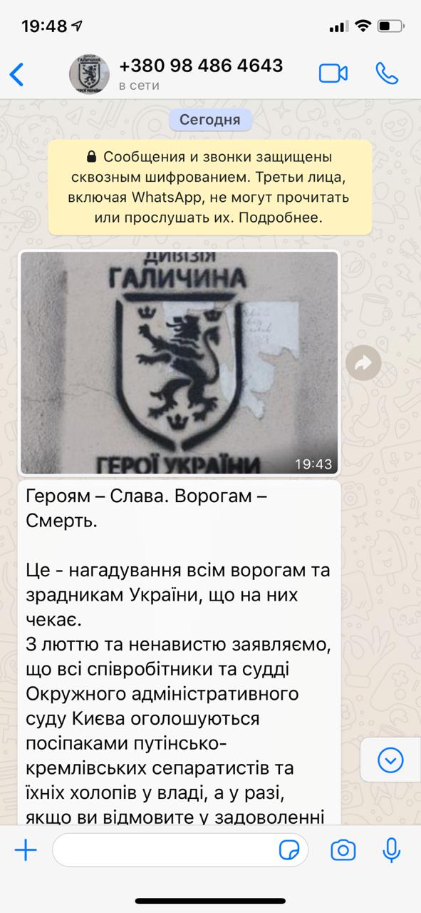 В них говорилось, что это "напоминание всем врагам и предателям Украины," и что все судьи Окружного апелляционного админсуда "объявляются пособниками путинско-кремлевских сепаратистов и их холопов во власти", если они откажут в удовлетворении апелляционной жалобы Института.