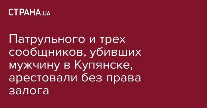 Суд  Харьковской области избрал меры пресечения в виде содержания под стражей без права внесения залога для сержанта патрульной полиции и еще трех жителей Купянска (Харьковская область), подозреваемых в умышленном убийстве мужчины. Об этом сообщает сайт прокуратуры Харьковской области.