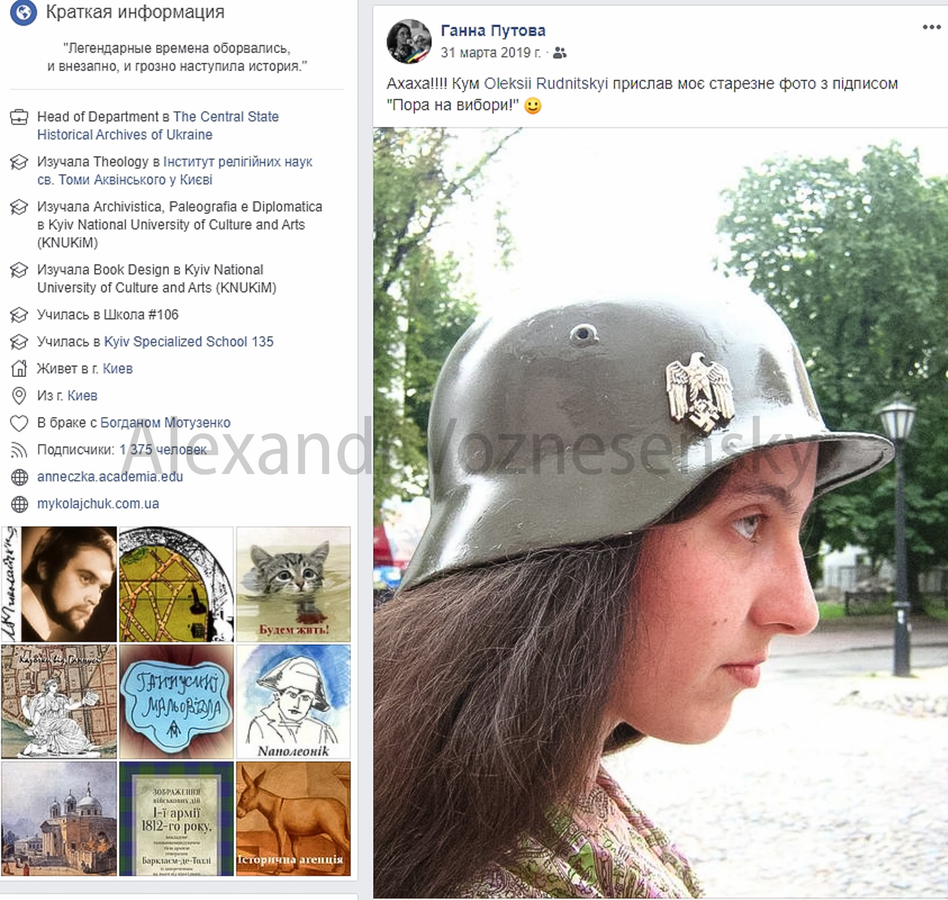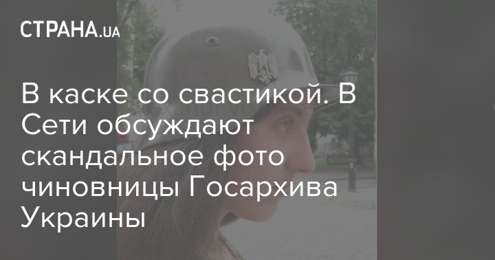 В сети обсуждают скандальные фото чиновницы из Госархива Украины Анны Путовой, которая опубликовала в Facebook снимки в нацистской военной каске со свастикой.