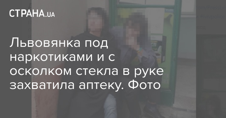 Во Львове задержали 43-летнюю женщину с признаками наркотического опьянения, которая забаррикадировалась в аптеке, разбила окно, схватила большой осколок и угрожала изрезать всех, кто к ней приблизится. Об этом сообщается на странице в соцсети патрульной полиции Львовской области.