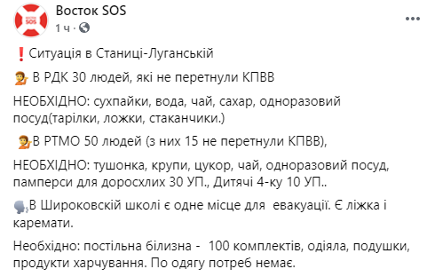 По данным Восток SOS в Станице находятся порядка 45 человек, которые застряли, поскольку не смогли пересечь КПВВ.