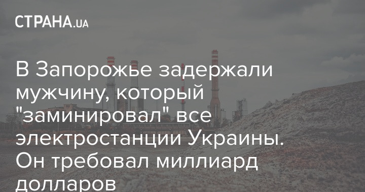 В Запорожье задержали мужчину, который "заминировал" все электростанции Украины. Он требовал миллиард долларов
