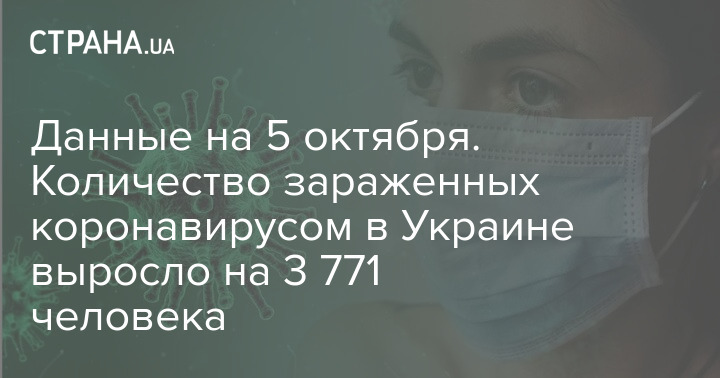 По состоянию на утро понедельника, 5 октября, в Украине подтвердился еще 3 771 новый случай заражения коронавирусом. Общее число заболевших достигло отметки в 230 233 человека.