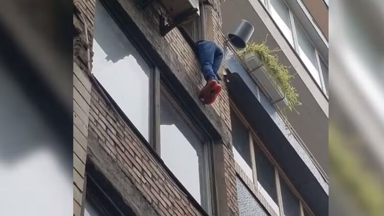 Мужчину, который свисал из окна, первой увидела женщина и обратилась в полицию. Кадр с видео