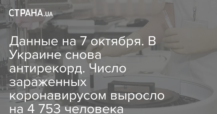 Данные на 7 октября. В Украине снова антирекорд. Число зараженных коронавирусом выросло на 4 753 человека