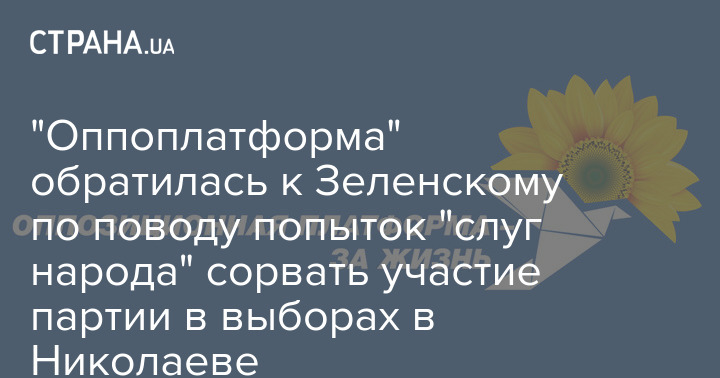 "Сегодня в Николаеве партия "Слуга народа" пытается любой ценой снять с выборов "Оппозиционную платформу - За жизнь". В ход идет административный ресурс, саботаж представителей "слуг" в избирательных комиссиях, давление на суды, судей и ЦИК. В связи с этим мы обращаемся к президенту Зеленскому с вопросом: когда Вы искренни? Когда в совместном заявлении с ЕС говорите о верности ценностям демократии, верховенству закона, уважению международного права и правам человека? Или когда закрываете глаза на откровенное политическое рейдерство, которым занимается команда "слуг народа" в Николаеве? Почему "слугам народа" в Николаеве можно плевать на демократию и лишать николаевцев права выбора? "Оппозиционная платформа - За жизнь" призывает президента Украины Владимира Зеленского прекратить политическое рейдерство в Николаеве. Оно еще больше снижает доверие к власти и не улучшает тяжелое состояние региона", - идет речь в заявлении политсилы.