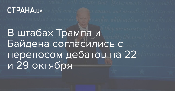 "Мы согласны, что это должно произойти 22 октября и, соответственно, третьи дебаты должны быть сдвинуты на неделю, на 29 октября", - отметили у главы Белого дома.