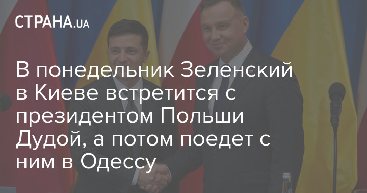 В понедельник Зеленский в Киеве встретится с президентом Польши Дудой, а потом поедет с ним в Одессу