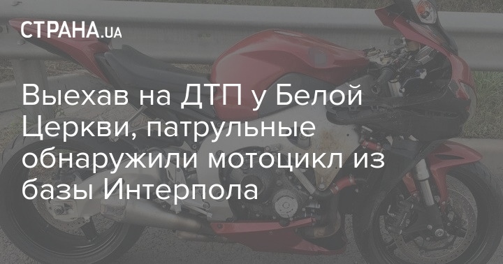 Патрульные полицейские Белой Церкви, что в Киевской области, прибыли на 15-й километр автодороги Киев - Одесса на вызов о совершении ДТП с пострадавшими. Там они обнаружили угнанный в Европе мотоцикл.