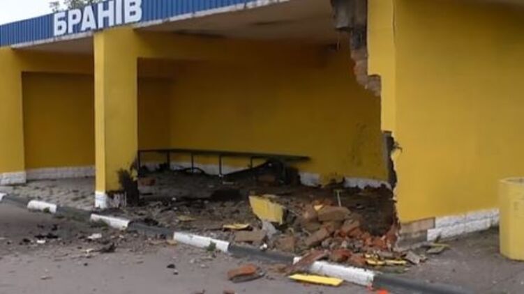 На трассе "Киев-Чоп" водитель на внедорожнике протаранил остановку.