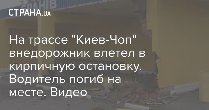 На трассе "Киев-Чоп" внедорожник влетел в кирпичную остановку. Водитель погиб на месте. Видео