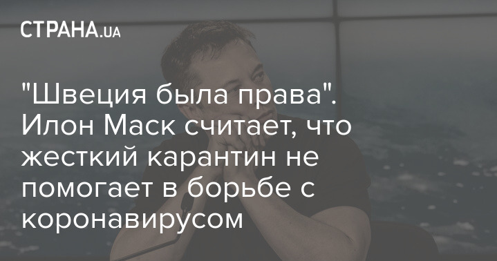 Изобретатель, инженер и миллиардер Илон Маск заявил, что Швеция, которая не вводила жесткий карантин, выбрала правильный путь в борьбе с коронавирусом.