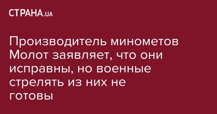 В Государственном концерне "Укроборонпром" отрицают обвинения в неисправности новых украинских минометов "Молот", переданных в августе ВСУ. Ранее минометчики 72-й отдельной механизированной бригады ВСУ  заявили о неисправности поступивших в воинскую часть "Молотов".