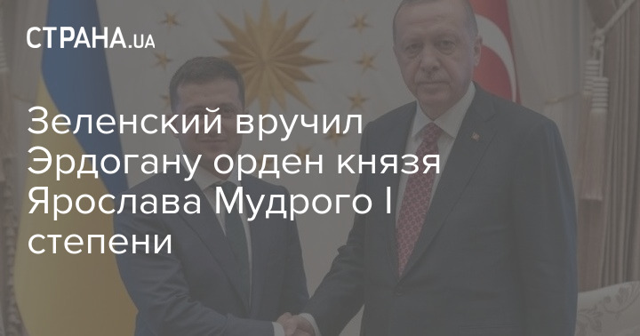 Президент Украины Владимир Зеленский, который находится в Турции с рабочим визитом, вручил главе Турецкой Республики Реджепу Тайипу Эрдогану орден князя Ярослава Мудрого I степени.
