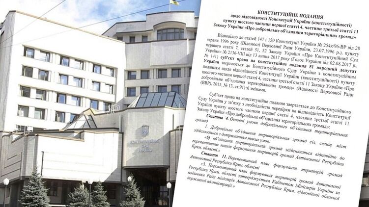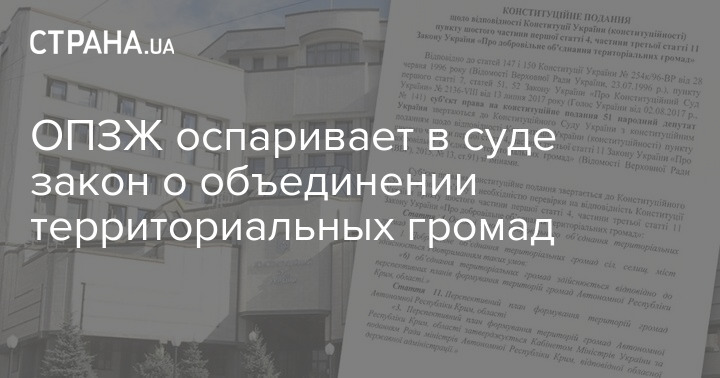 Фракция "Оппозиционная платформа - За жизнь" обратилась в Конституционный Суд, чтобы он установил, соответствует ли Конституции Закон Украины "О добровольном объединении территориальных громад". Постановление просят рассмотреть его как неотложное.