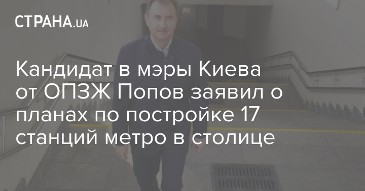 Кандидат в мэры Киева на грядущих выборах от "Оппозиционной платформы - за жизнь" Александр Попов назвал развитие киевского метрополитена ключевым вопросом, который сможет решить транспортную проблему города. Он заявил, что, когда в мэрию вернется профессиональная команда, план строительства метро будет возобновлен и реализован в короткие сроки.