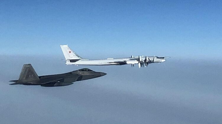 Военно-воздушные силы США подняли в воздух истребители F-22 для сопровождения российских стратегических ракетоносцев Ту-95МС во время их 12-часового полета на Дальнем Востоке.