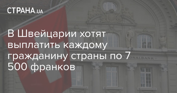 В Швейцарии хотят выплатить каждому гражданину страны по 7 500 франков