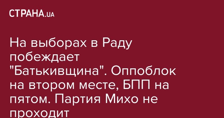 На выборах в Раду побеждает "Батькивщина". Оппоблок на втором месте, БПП на пятом. Партия Михо не проходит