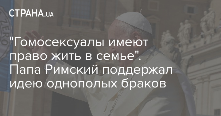 Папа Римский Франциск высказался в поддержку существования однополых семей. По его мнению, регулироваться такие браки должны отдельным законом о гражданских союзах.