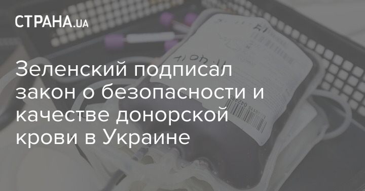 Президент Владимир Зеленский подписал закон № 931-IX "О безопасности и качестве донорской крови и компонентов крови", который предусматривает стандарты подготовки, тестирования, переработки, хранения, распределения, транспортировки и реализации донорской крови и ее частиц.