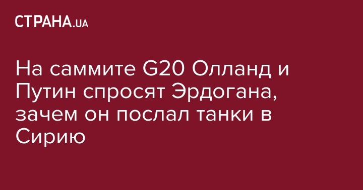 Президент Франции Франсуа Олланд намерен "на полях" саммита G20 в Китае обсудить ситуацию в Сирии с президентом России Владимиром Путиным и турецким лидером Тайипом Эрдоганом. Как передают РИА "Новости", об этом сообщил официальный представитель правительства Франции Стефан Ле Фоль.