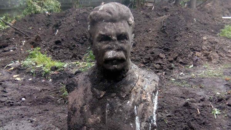 рабочие выкопали бюст Сталинабюст Сталина выкопали из земли