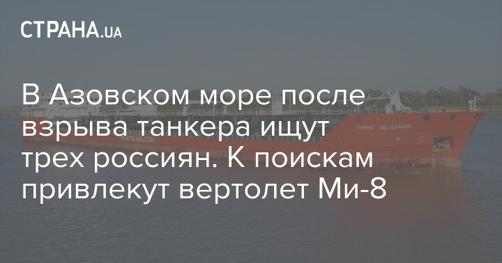 В Азовском море продолжается поисковая операция после взрыва на борту танкера "Генерал Ази Асманов" с 13 членами экипажа на борту. Предварительно ищут трех россиян: боцмана, 19-летнего матроса и 23-летнего практиканта.