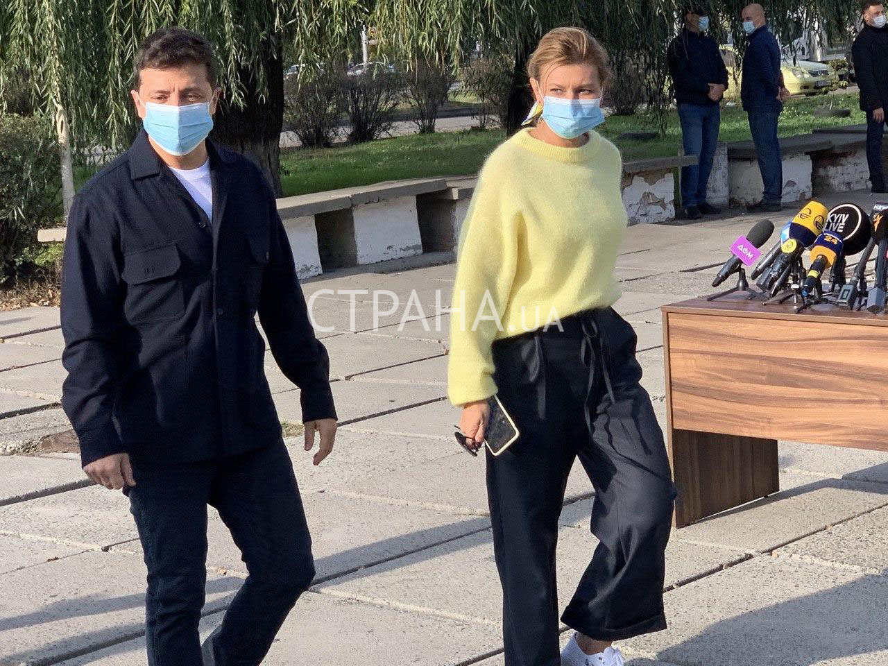 Президент Украины Владимир Зеленский вместе с супругой Еленой и в сопровождении телохранителей пришел на избирательный участок, чтобы проголосовать.