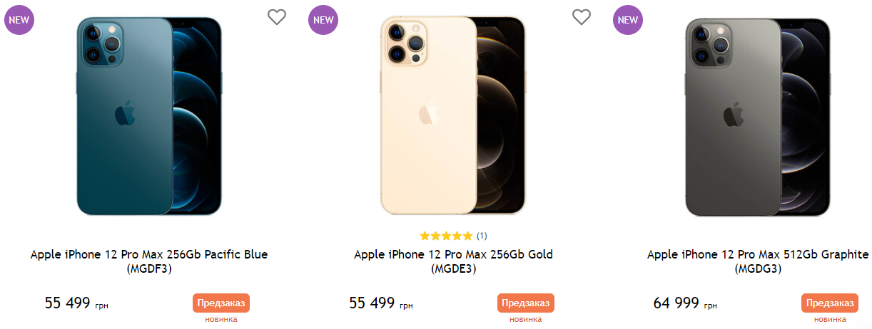 На olx.ua iPhone 12 Pro Max предлагают по цене от 54 999 грн за 512 ГБ;