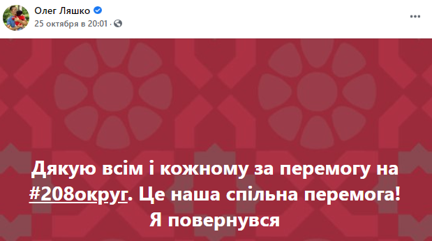 "208 округ окончательно послал Ляшко с вещами на выход" - написал журналист Василий Крутчак.
