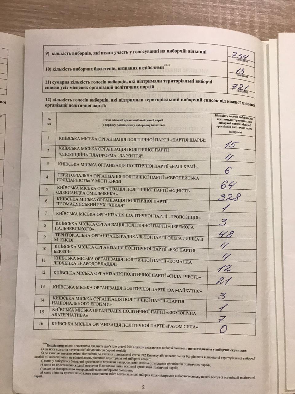 Так, в распоряжении "Страны" оказались два протокола УИК 800133 в Дарницком районе Киева один из которых был сделан до пересчета голосов, а второй после. Разница лишь в том, что до пересчета у ОПЗЖ было 48 голосов, а после - 8. При этом у "Перемоги Пальчевского" 40 и 80 соответственно.
