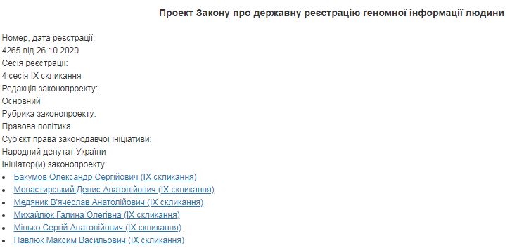 В Верховной Раде зарегистрирован законопроект о государственной регистрации геномной информации человека.