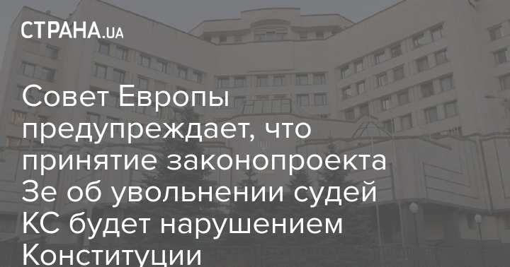 Совет Европы предупредил председателя Верховной Рады Дмитрия Разумкова, что принятие законопроекта президента Владимира Зеленского о прекращении полномочий судей Конституционного суда (КС) будет "вопиющим нарушением" основного закона.