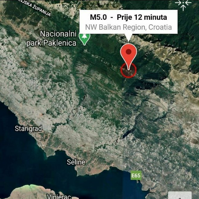 В Хорватии произошло землетрясение с эпицентром у города Сплит. Карта