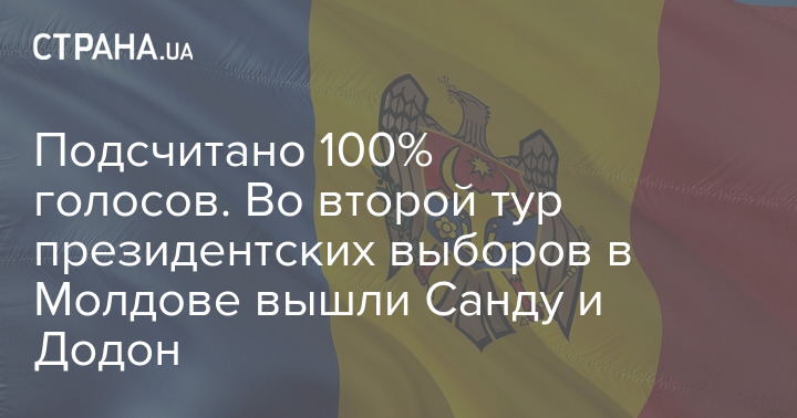 Прозападный экс-премьер Молдовы Майя Санду набрала 36,16% (487 635 голосов), действующий пророссийский президент Игорь Додон - 32,61% (439 866 голосов). Так, в Молдове пройдет второй тур президентских выборов.