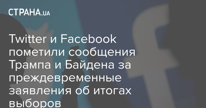 Twitter и Facebook пометил сообщения Трампа и Байдена за преждевременные заявления об итогах выборов. Скриншот: Фейсбук