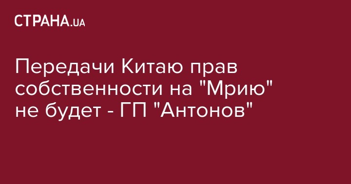 Передачи Китаю прав собственности на "Мрию" не будет - ГП "Антонов"