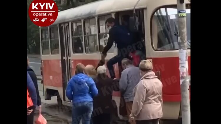 "На остановке Василия Макуха женщина пыталась войти в трамвай, но кондуктор и пассажиры ее не пускали", - говорится в сообщении.