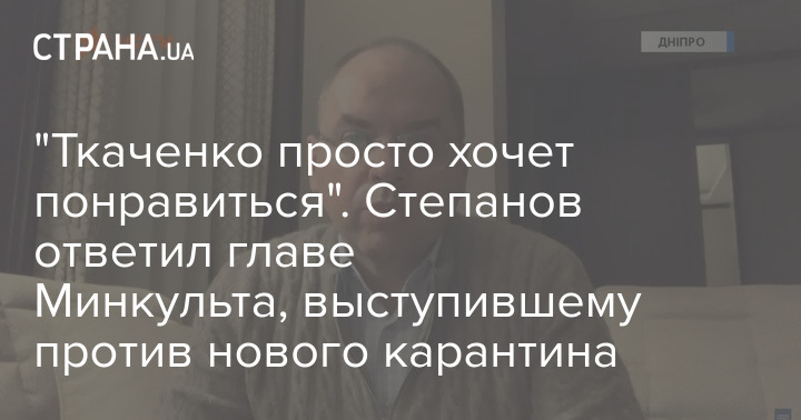 Также Степанов предложил министру культуры Александру Ткаченко, который не поддержал инициативу введения карантина на выходных, чтобы тот сам предложил механизм прохождения карантина. Глава МОЗ предположил, что, выступая с такой критикой, Ткаченко "просто хочет понравиться".